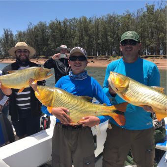 Las embarcaciones cuentan con equipos de pesca de dorados y de bogas, con señuelos artificiales y carnadas. Además cuentan con refrescos, agua y cerveza.